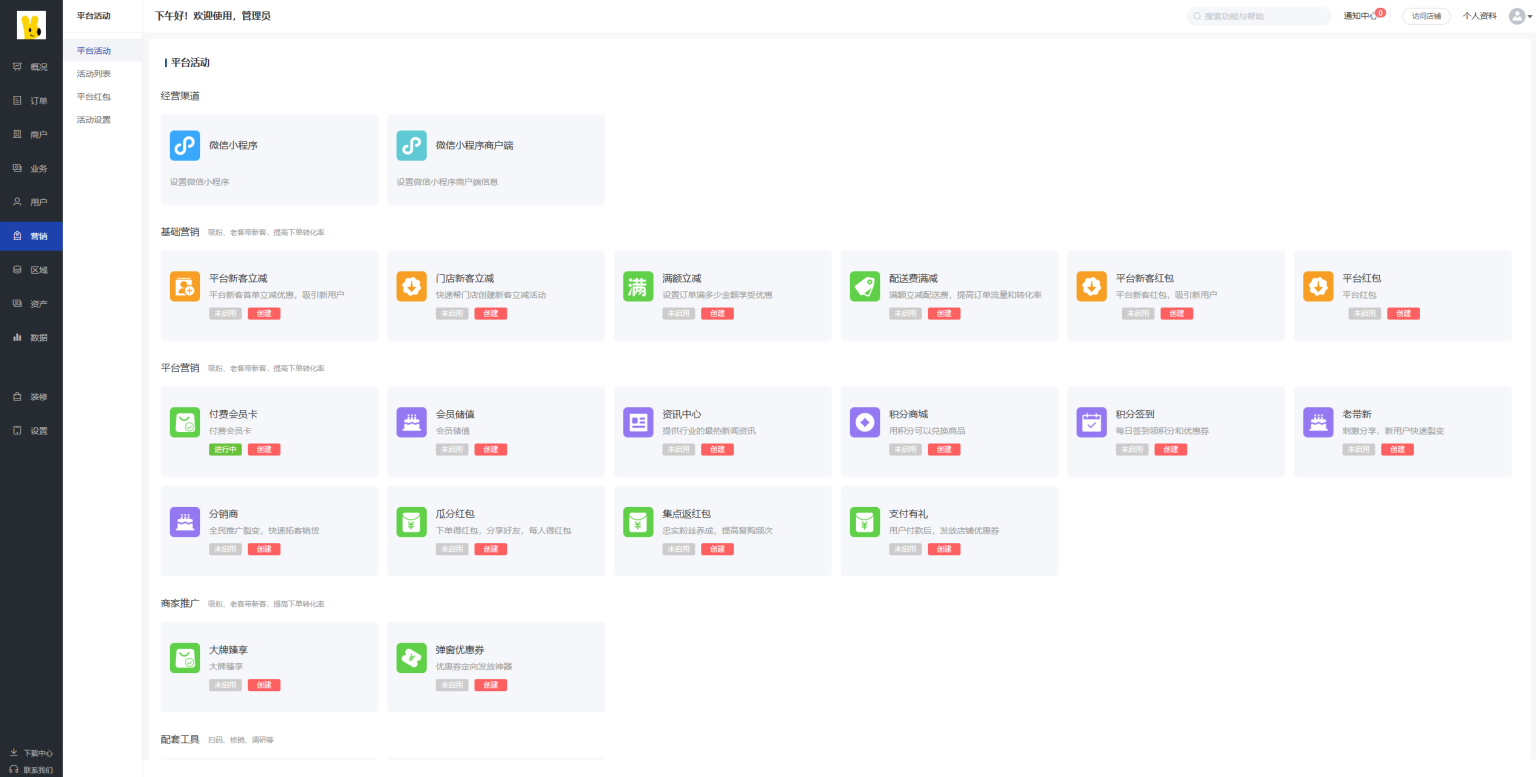 系统为SAAS系统,无限创建平台,包含总后台、平台后台、商户管理后台;